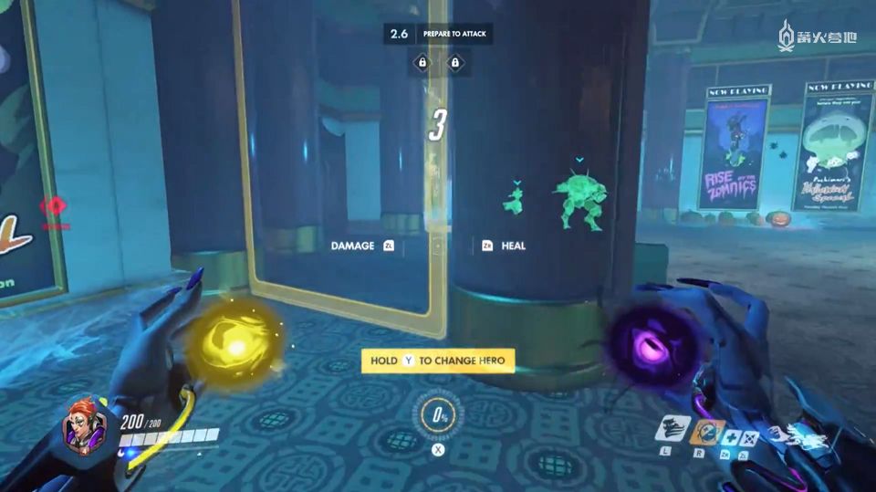 在死神现身并射出子弹之前,我晃着手里的 Switch,全力让十字准星朝着对方移动。经过几次尝试之后,我找到了最佳的操控方法!首先,玩家在晃动主机前,先用右边的摇杆瞄准对方,然后微调十字准星,这样就能得到更好的攻击效果。然而,这种操作方式远远比不上《塞尔达传说:旷野之息》林克微操弓箭的效果。除此之外,我还换了其他英雄来测试 Switch 的体感功能,如果玩家不适应的话,这些新颖功能就会成为体验的一大障碍,所以我最后还是选择关闭这个功能。