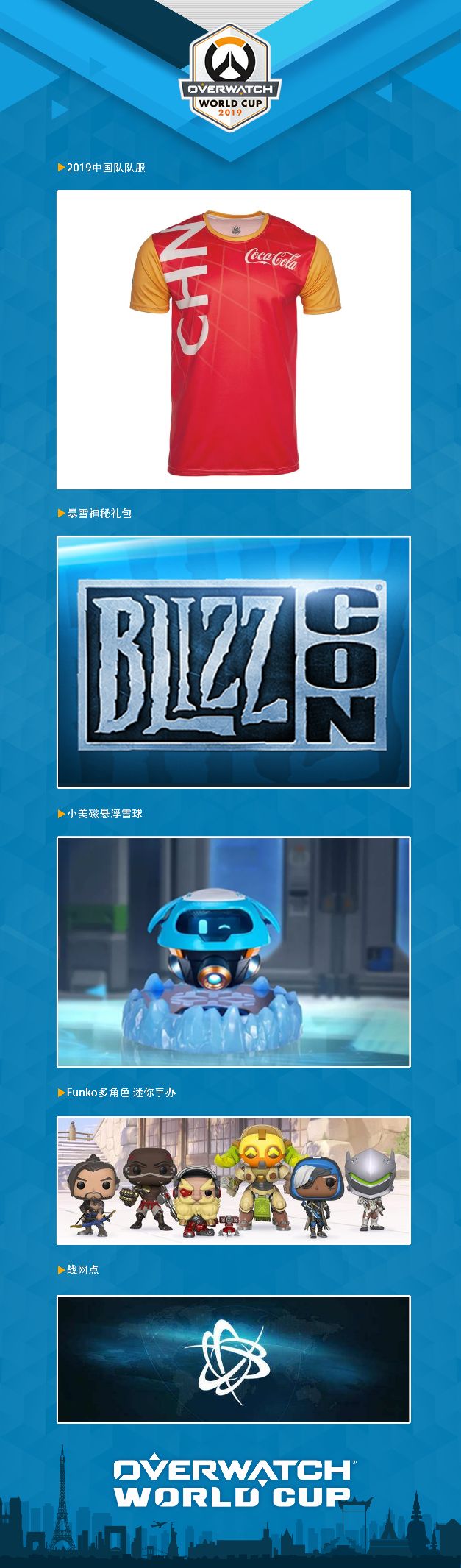 直播间奖品包括2019《守望先锋》世界杯中国队队服、战网点以及各种暴雪周边。