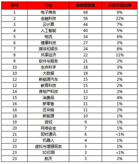 《2019胡润全球独角兽榜》上榜企业是创办不超过10年,全球估值10亿美元以上,获得过私募投资且未上市的初创企业。据胡润研究院统计,2019年全球有494家独角兽企业,分布在24个国家的118个城市。从独角兽企业所属行业来看,排名前五的是电子商务、金融科技、云计算、人工智能和物流领域。在本次榜单中的部分独角兽企业也即将上市或筹备上市,如即将在美上市的网易有道、预计11月登陆港交所的旷视科技等。