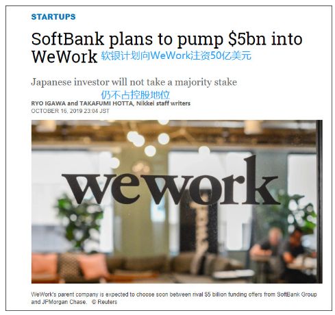 4. WeWork获软银50亿美元新融资,软银将持有约80%的股份