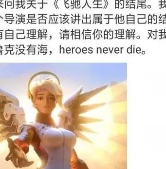 电影《飞驰人生》中的"天使"作为守望先锋中的英雄角色,可以使用技能使单个队友死而复生,张驰即便冲出了赛道,也会因此活下来。