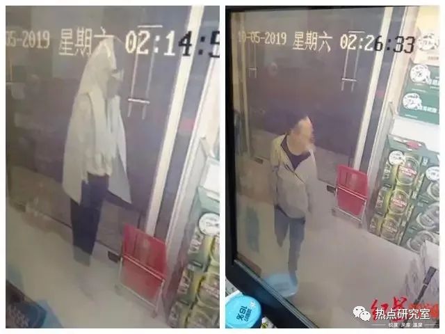 ↑凌晨两点20分吴某然进入超市,凌晨两点半男子进入超市(超市监控有延迟)