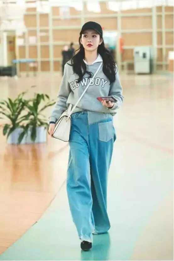 身材好颜值高的王鸥,她选择的一身搭配则是,青春靓丽风了,她选择的上衣是黑色圆领卫衣,卫衣帽子是白色拼接款式,欧姐美如画。小编看到这张图,立马变成王鸥的颜粉了,她身材真的高挑,衣品也很好,搭配上没有几次出错的。她的下装选择了一款牛仔阔腿裤,牛仔阔腿裤上缝了一款同色系不同深浅的口袋,把平平无奇的款式瞬间就有了高级之处,一双黑色鞋子就属于完成搭配的全部部分了。配饰选择的是一款简单黑色棒球帽和白色包包,作用就是防晒和增加时尚感。现在大家学会如何进行秋天阔腿裤穿搭了么,现在就打开衣橱动起来吧。