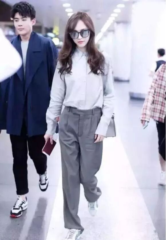 “时尚女王”唐嫣的穿搭也很出色,她的选择就是职场风了,很有范儿。唐嫣上身简约款式白立领长袖衬衫,下装一件灰色设计感阔腿西服裤,穿着一双白色板鞋,非常都市丽人。喜欢简约款式的穿搭少女可以选择这种减龄风的穿搭方式,即使是不那么年轻也是完全可以hold住的。
