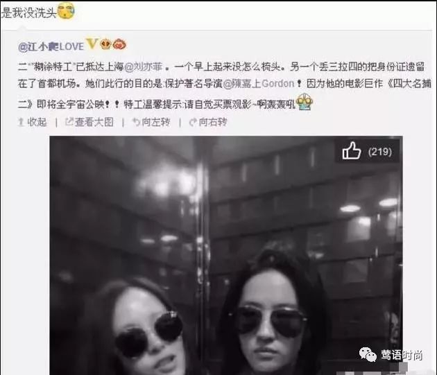 她还发微博说“一个没梳头”内涵刘亦菲,刘亦菲只好直言自己没洗头。