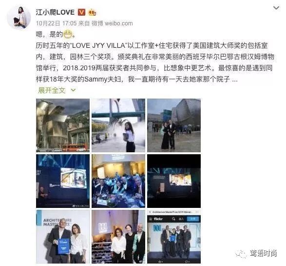 昨天我吃瓜的时候被一则消息逗笑了:江一燕荣获美国建筑大师奖。