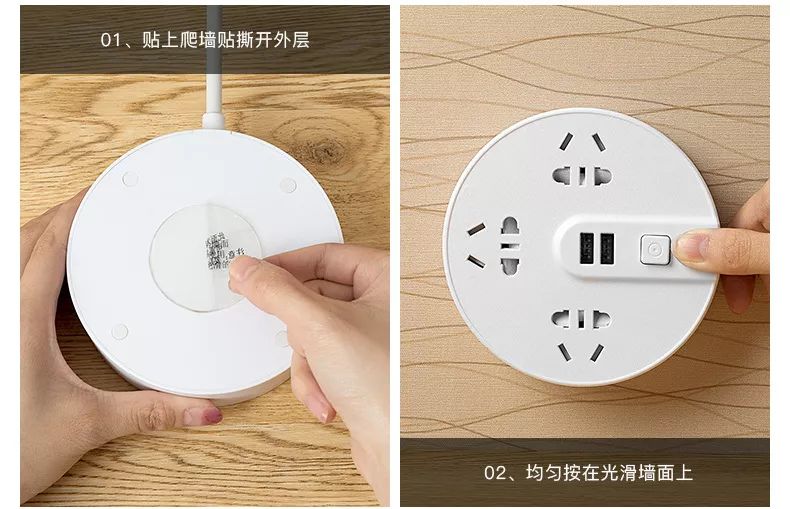 【可贴墙面多功能排插】创意爬墙面插线板USB快充自带指示灯送小夜灯