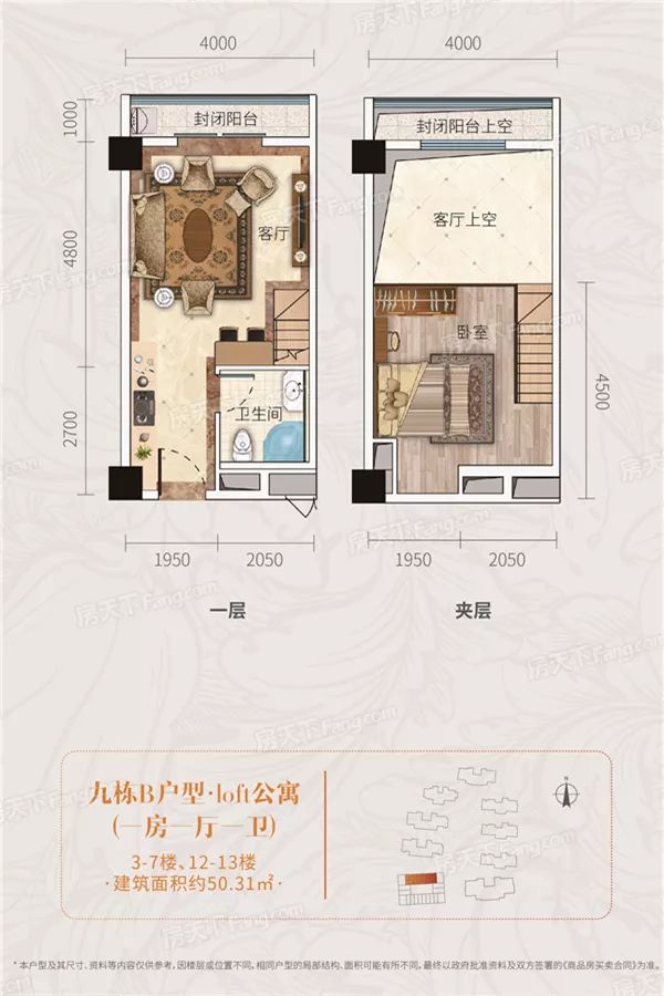 LOFT公寓,面积在30-50平米的小户型,层高在3.6-5.2米左右,销售时按一层的建筑面积计算,但实际使用面积却可达到销售面积的近2倍;高大而开敞空间,上下双层复式结构,户型内无障碍,户型间可全方位组合,业主可自行决定风格和格局。双钥匙公寓,上下独立入户,两把门钥匙,互不干扰,可实现买一套租两套,或者住一套租一套。
