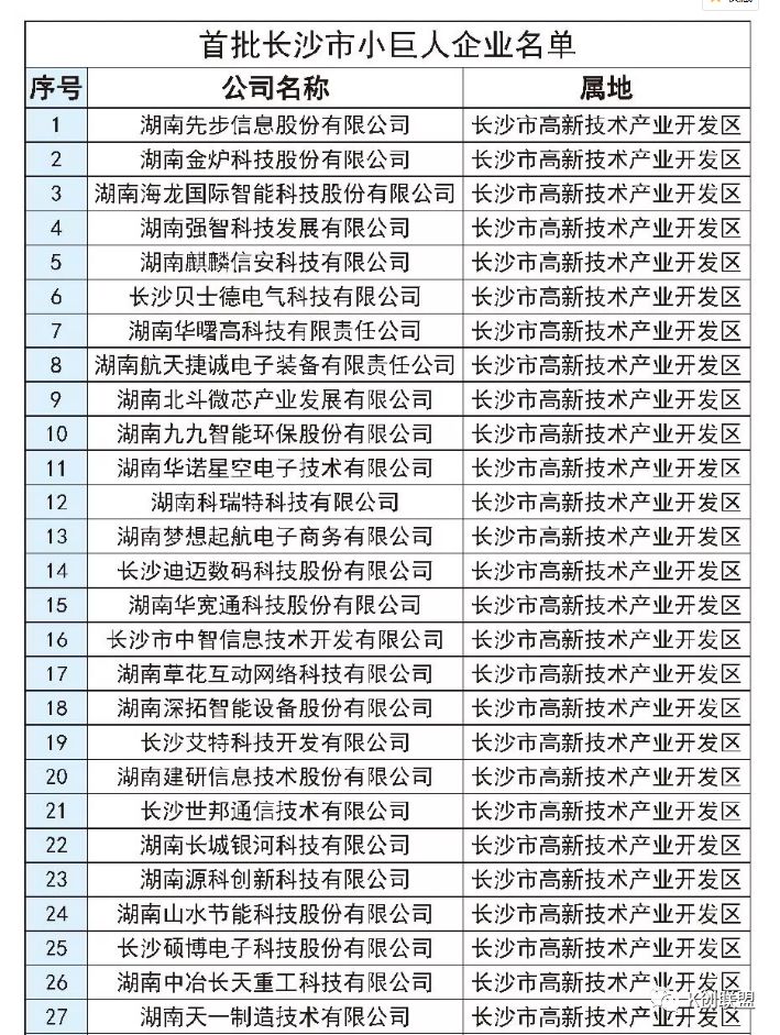 长沙首批!工业和信息化类“小巨人企业”公示(名单)