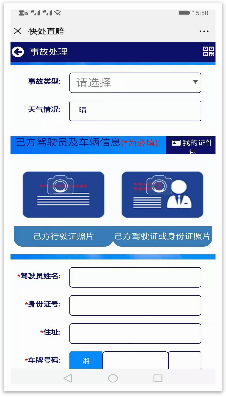 按要求填写页面信息后,需要当事人获取对方当事人的手机验证码,填入后就可点击“提交交警定责”,信息提交完毕。