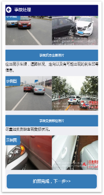 页面上有三张拍摄图示,根据图示拍摄即可。图片上传完成后,点击下方“拍照完成,进入下一步”。此时系统会提示用户,可以挪车。
