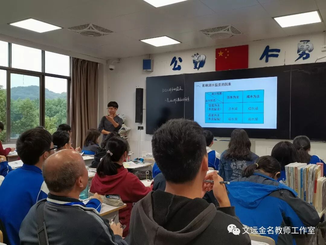 我们到达湖师大附中后,先是简单参观了校史馆,然后就马不停蹄地前往高三课室,年轻优秀的祝航老师为我们展示了一节精彩的高三专题复习课《湖泊的盐度》。
