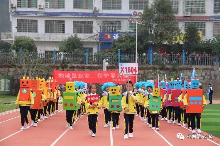 迎面向我们走来的是四年级方阵队,纸盒机器人,垃圾分类操,废物利用时装秀..... 借本次运动会向世界呼吁:保护环境,环境主宰着我们人类的生命!