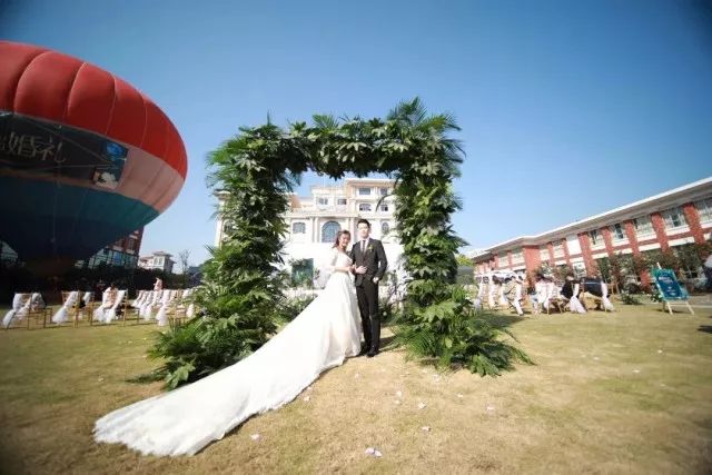 草坪、气球、鲜花、西式的婚礼一切将温馨而浪漫