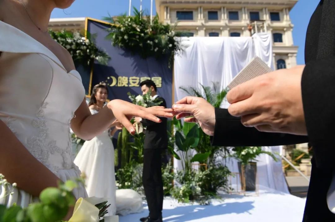 在一片温馨的气氛里10组夫妇将依次登场开始神圣的婚礼仪式他们将在主持人的带领下宣读爱的誓言