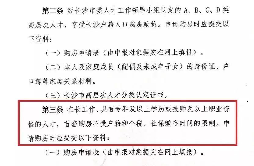 了解更多政策解读,添加小助手微信:atangcs,回复【加群】目前免费进入哦!!!其中第三条写道:在长工作、具有专科及以上学历或技师及以上职业资格的人才,首套购房不受户籍和个税、社保缴存限制。