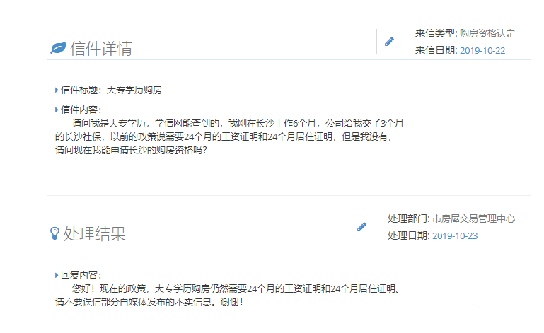 据长沙市住建局局长信箱10月23日最新回复:现在的政策,大专学历购房仍然需要24个月的工资证明和24个月居住证明。请不要误信部分自媒体发布的不实信息。