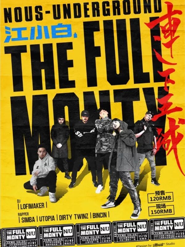 THE FULL MONTY,来自英国钢铁工业城市谢非尔德的一句俚语,本意为“一应俱全,应有竟有”,也可以理解为想要啥都有。那么把这句俚语带进NOUS六位成员的作品中,就可以理解这六位rappers的作品中包含了“THE FULL MONTY”的意思。当然《THE FULL MONTY》也是一部经典的电影。它写实,幽默,荒诞,深刻。如果你看过这部电影作品,又来到了演出现场,那你则会对这次巡演拥有更加独特的理解。