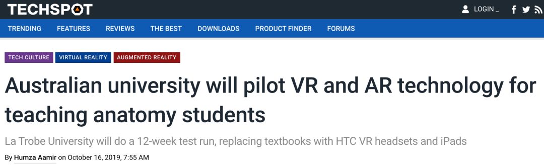 澳大利亚拉筹伯大学近期宣布:将在接下来的12周内通过VR和AR可视化技术来教解剖学。
