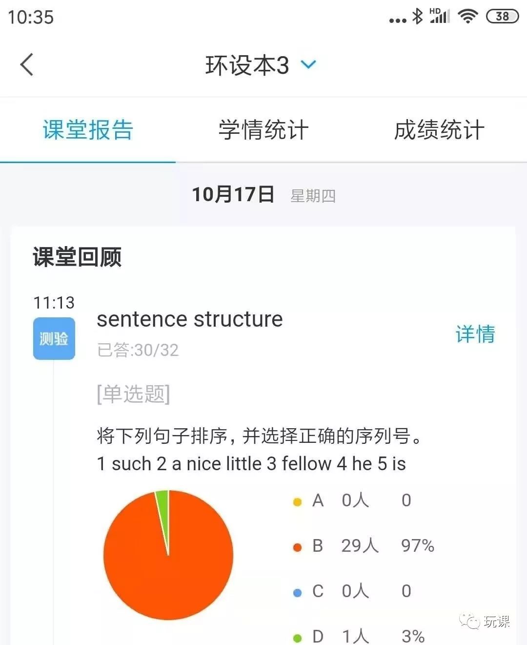 将课堂练习设置成一个个小测试、小作业、小考试,(习题设置目标要小,且有渐进性)每做一次,答案马上出现在学生手机上。成绩分布、排名、每一题的对错率全都有系统地分析,一目了然。人人争做No.1!