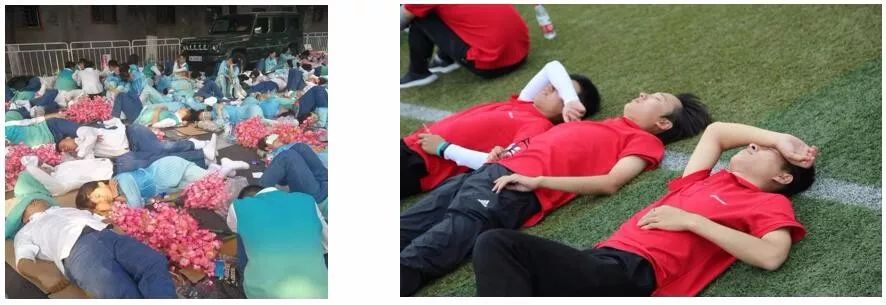 “见缝插针”地休息是每一位队员的必备技能。“天当被,地当床,矿泉水瓶当枕头,见缝扎针地休息,为的是到演练的时候达到最佳的精神状态。”嘉信公司的牛子昱这样回忆道。