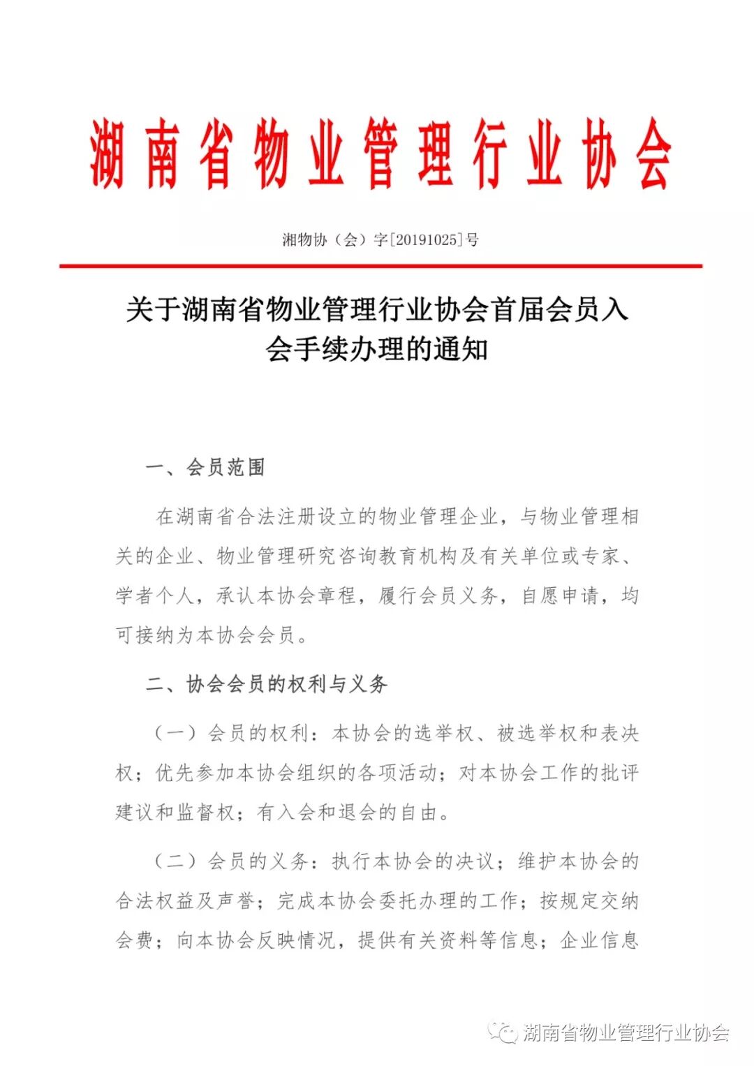 关于湖南省物业管理行业协会首届会员入会手续办理的通知