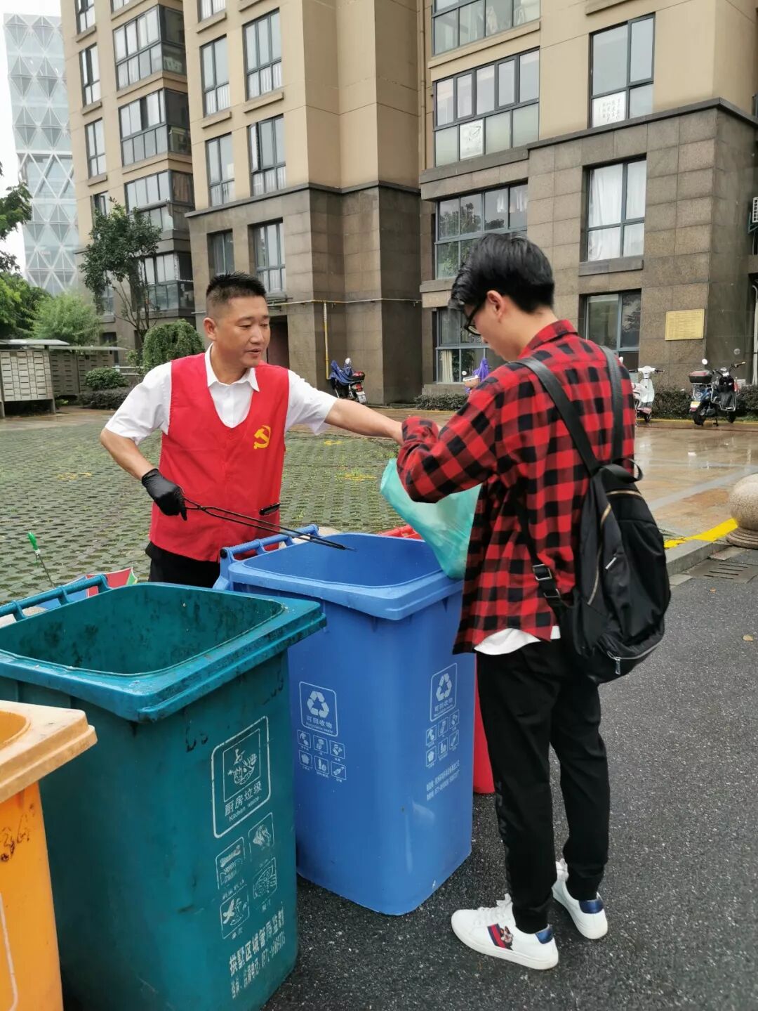 每天轮流定点定时定岗,进行小区垃圾分类宣传及上门指导,为小区顺利实施垃圾分类定时投放做出贡献。