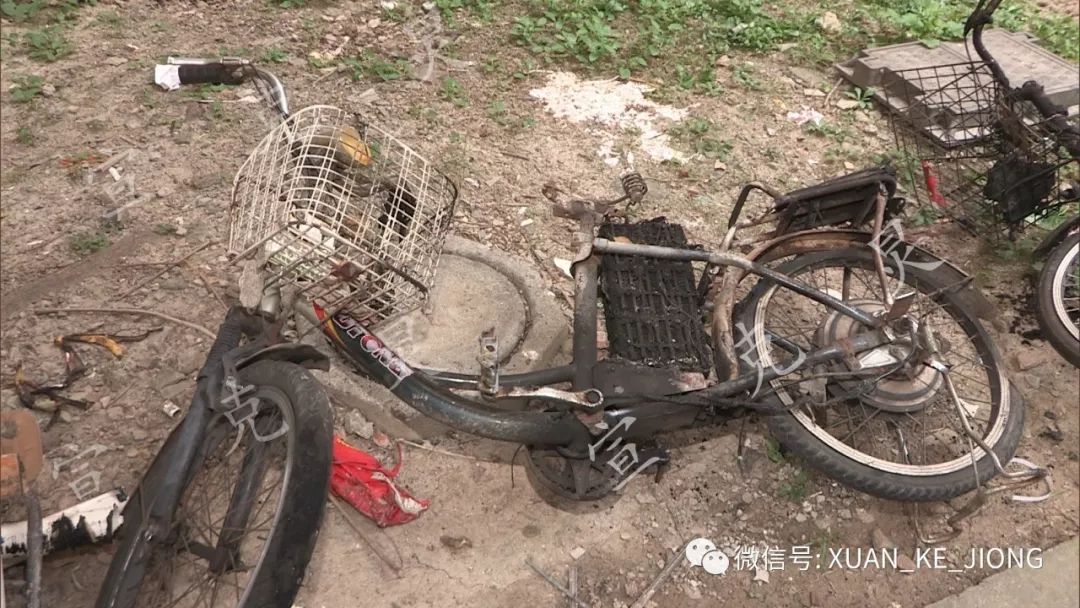 小区物业保安人员顾先生:“起火原因是什么充电吗?充电。总共几辆车被烧?3辆电动车、还有自行车,总共4、5辆吧。”