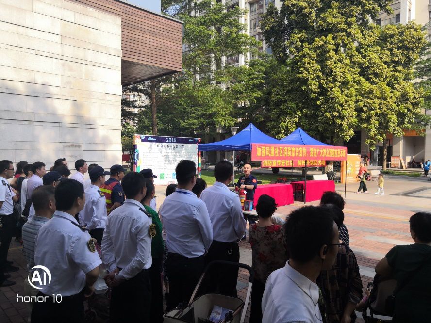 为落实广州市《高层建筑消防安全综合治理工作方案》,提升居民家居的自防自救能力,减少高亡人火灾事故发生。2019年10月22日上午9点,黄阁镇社工服务站联动南沙区消防大队、黄阁镇网格中心及黄阁镇凤凰居委在万科府前一号南门外,举办了关于“防风险,除隐患,遏事故”为主题的消防安全知识讲座,共有100多名周边小区居民和物业人员积极参与其中,活动中工作人员现场派发消防宣传小册子220多份。