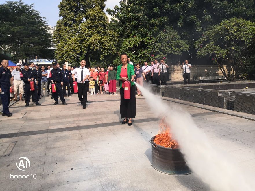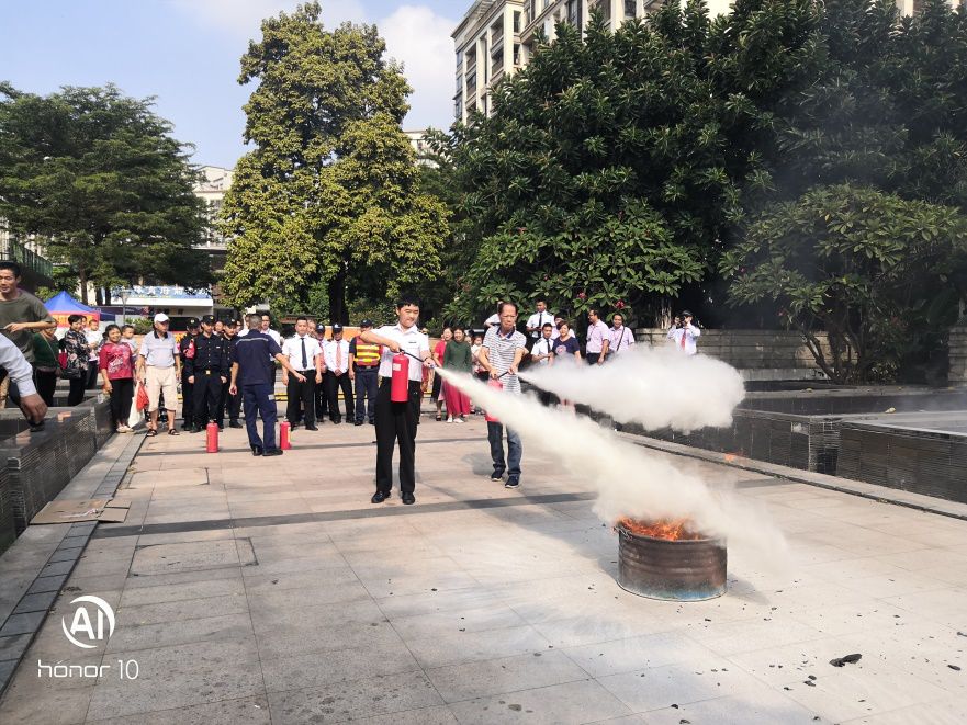 讲座环节,区消防大队卢教官重点围绕火灾的防范、扑救和自救等知识技能展开,着重向居民讲解了日常用火与用电的安全防火知识,火灾发生时的逃生技能,对各种灭火器、防烟面具的使用方法及使用环境进行了详细的说明和讲解;还组织了居民使用灭火器进行灭火的实操演练。