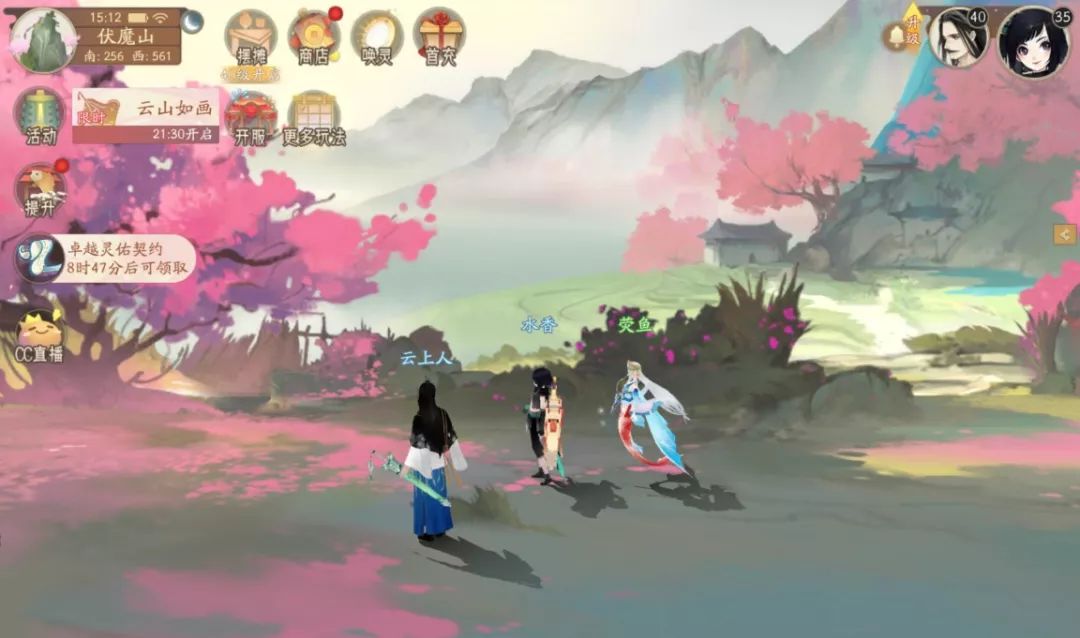 刚进入游戏,当中大场景画面给人一种传统水墨画的感觉。美轮美奂的场景搭配上经典的角色设计,将玩家的思绪一瞬间拉回到童年,不禁笔者回忆起胡歌、刘诗诗等主演的《轩辕剑之天之痕》。