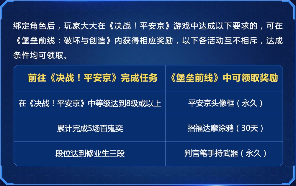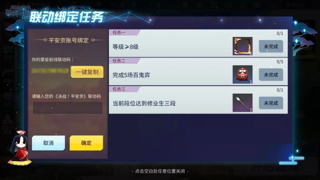 你的堡垒前线联动码,前往平安京进行绑定哦~两种绑定方式都可以成功绑定账号参与活动!点击“确定”,就这样!绑定成功!是不是so easy?
