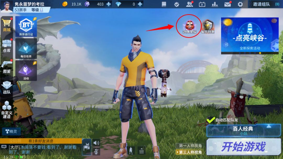点击游戏界面右上角的“式神降临”