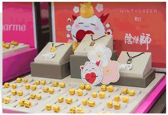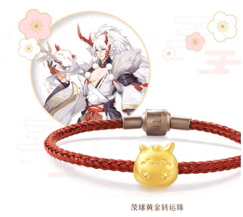 去年,周生生就已经与阴阳师合作,推出跨界金达摩手链。今年七夕,周生生又联手阴阳师推出茨球转运珠及茨球耳饰两款足金联名产品,并在游戏内推出挑战周生生联动LBS鬼王活动。