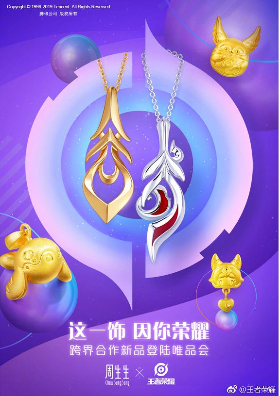 2月14日情人节期间,王者荣耀也与周生生推出了联动产品