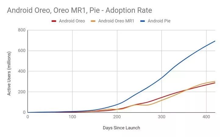 根据谷歌的统计,截止至今年八月份,安卓 9 的市场占有率为 22.6%,虽然这个数字不高,但也已经比去年同一时间安卓 8 的更新率多了一倍有多。目前谷歌发布了正式版的安卓 10 系统,华为和一加的新机都已经预装了安卓 10 系统上市。