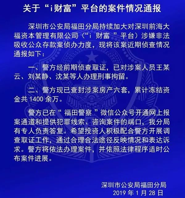 警方通报极路由0元购新进展极路由“0元购”事件有了新进展,10月23日,深圳福田警方发布《关于“i财富”平台的案件情况通报》。
