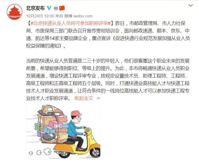 北京快递从业人员将可评职称,最高为“正高级工程师”