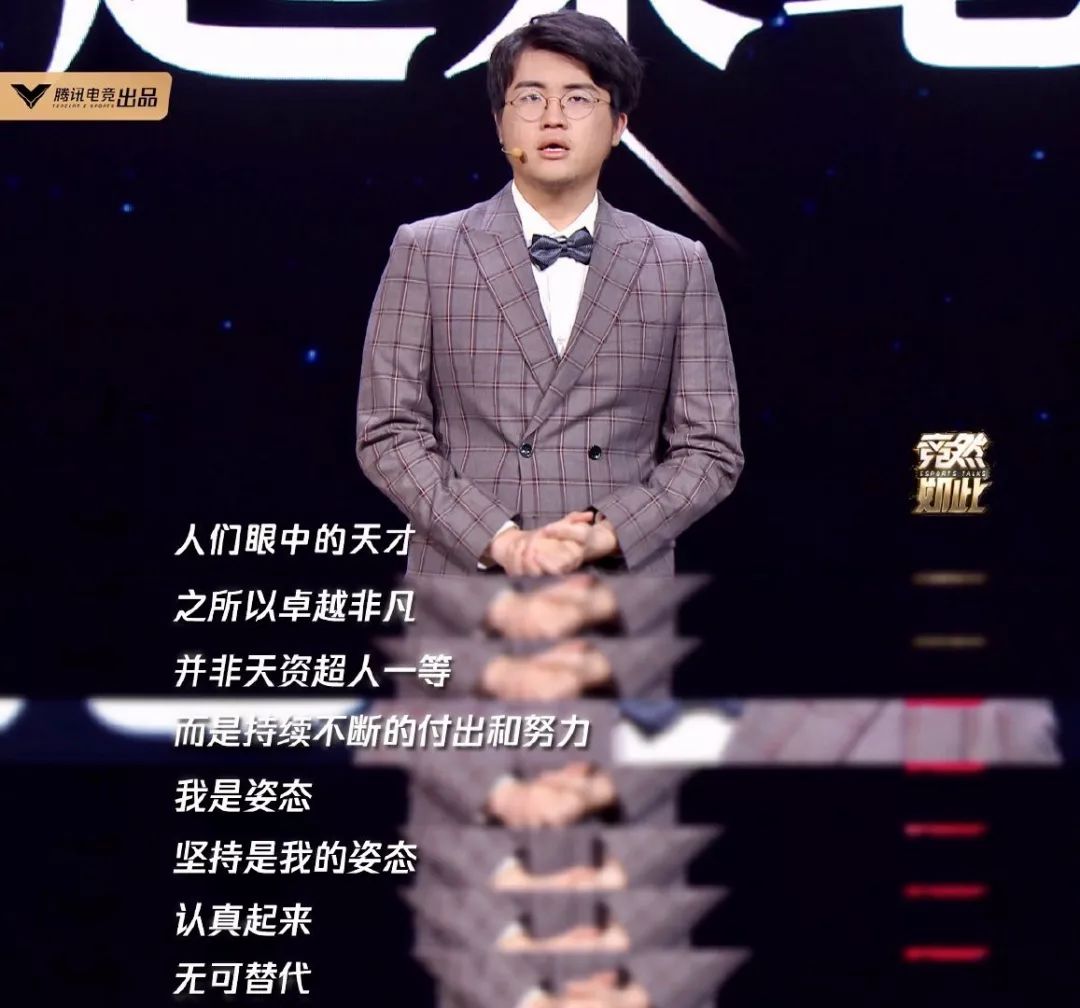 值得一提的是前英雄联盟职业队教练、斗鱼知名主播芜湖大司马和LPL003号选手RNG.Zz1tai以“电竞从业者”的身份讲述了自己眼中的电竞。分享中,大司马谈到了电竞对于自己的意义和带给自己的改变。而姿态则从现在看以前自己的职业选手生涯,坦言虽然条件很艰苦,但依然值得去铭记。作为电竞人,大司马和姿态不约而同的更希望:电竞能够真正被越来越多的大众所接受和理解。姿态在结尾时说的那段话更是成为全场的“焦点”,“人们眼中的天才,之所以卓越非凡,并非天资超人一等,而是持续不断的付出和努力。我是姿态,坚持是我的姿态。认真起来,无可替代!”