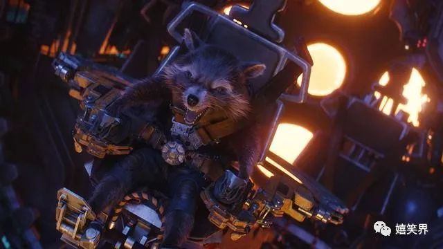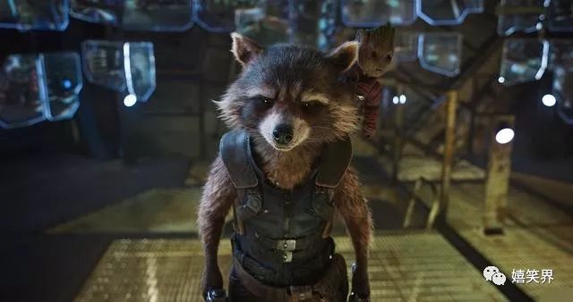 把火箭放在这里,有些人可能不是很明白,因为电影中关于火箭的细节很少。而我们看到的火箭,是一个天不怕地不怕,桀骜不驯的小浣熊。走到哪里都是一副凶巴巴的样子,包括在满是恶人的监狱里,小浣熊都是老大。虽然是因为树人,但是树人和小浣熊本来就是一家人。