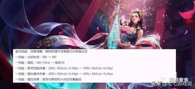 杨玉环加强,1技能蓝耗降低,伤害提升,并新增效果音波对野怪小兵伤害翻倍,但是强化普攻伤害降低,冷却时间增加1秒。被动效果调整,只对英雄生效。此次调整提高了杨玉环在前期的清线能力,蓝耗降低也提升了她的续航能力。