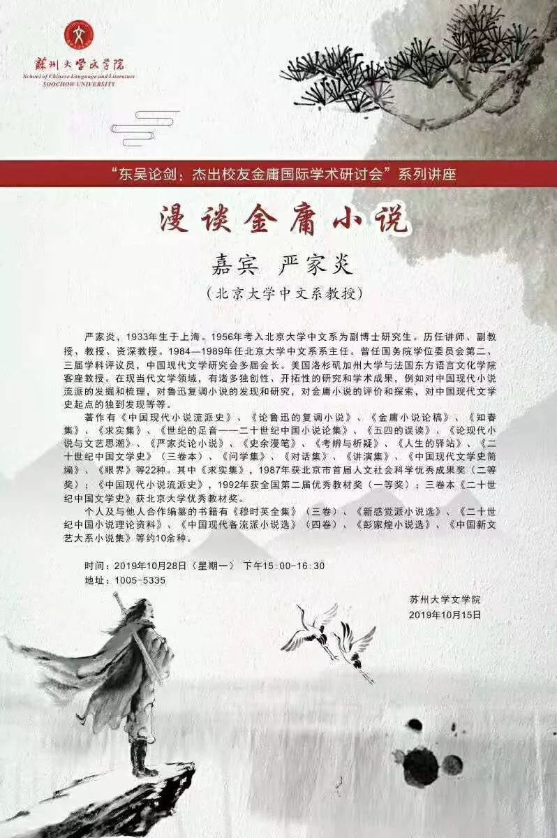 如果说“五四”文学革命使小说由受人轻视的“闲书”而登上文学的神圣殿堂,那么,金庸的艺术实践又使近代武侠小说第一次进入文学的宫殿。这是另一场文学革命,是一场静悄悄地进行着的革命,金庸小说作为20世纪中华文化的一个奇迹,自当成为文学史上光彩的篇章。我们衷心钦佩查良镛先生在事业上和文化上取得的双重的巨大成就,并向他致以最诚挚的敬意!一九九四年十月二十五日(《一场静悄悄的文学革命——在查良镛获北京大学名誉教授仪式上的贺辞》,原载香港《明报月刊》一九九四年十二月号)@以下相关阅读,或许你也感兴趣【中国通俗文学】金庸研究回顾