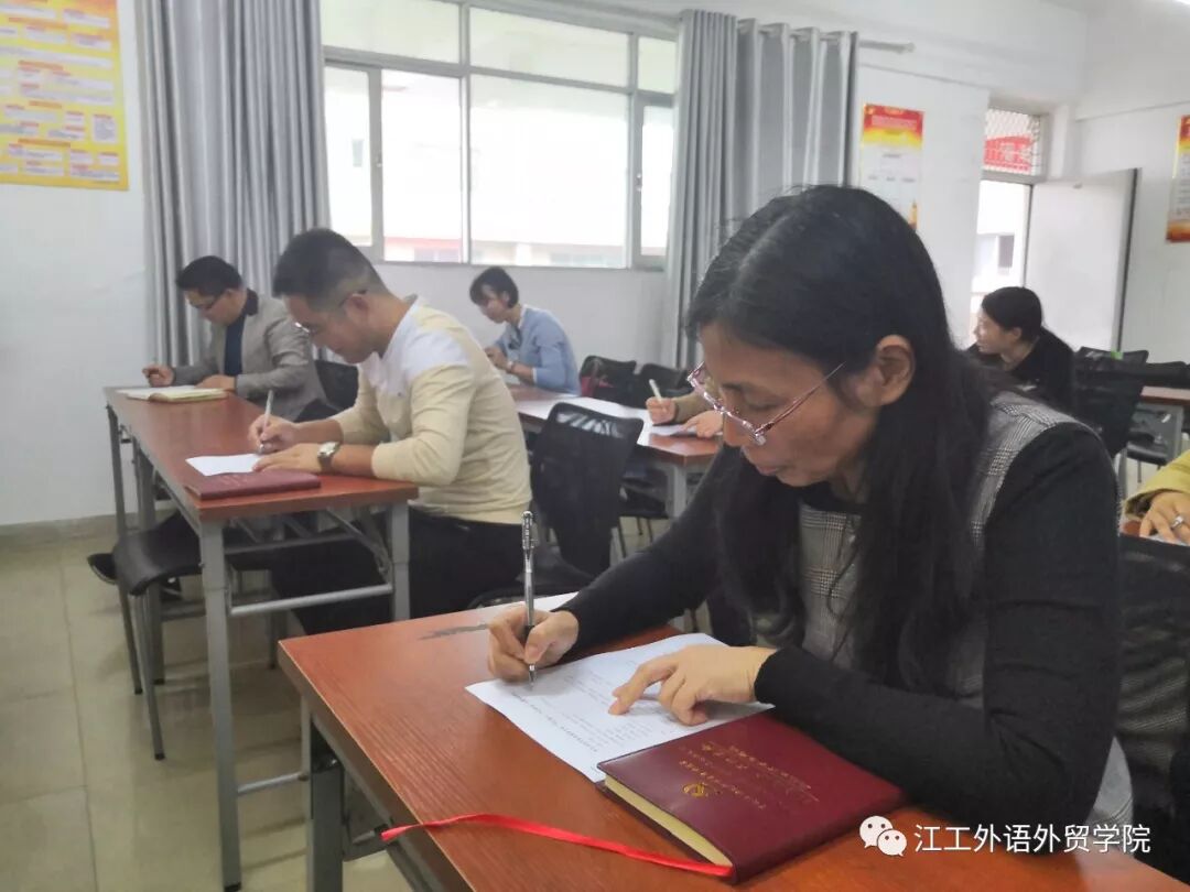 为贯彻落实“不忘初心,牢记使命”主题教育学习效果,外语外贸学院直属党支部于10月25日在C栋601党员活动室组织开展“不忘初心,牢记使命”主题知识考试,紧紧围绕守初心、担使命,找差距、抓落实的总要求,坚持将学习教育、调查研究、检视反思、整改落实四项重点措施贯穿始终,确保主题教育取得了阶段性成效。