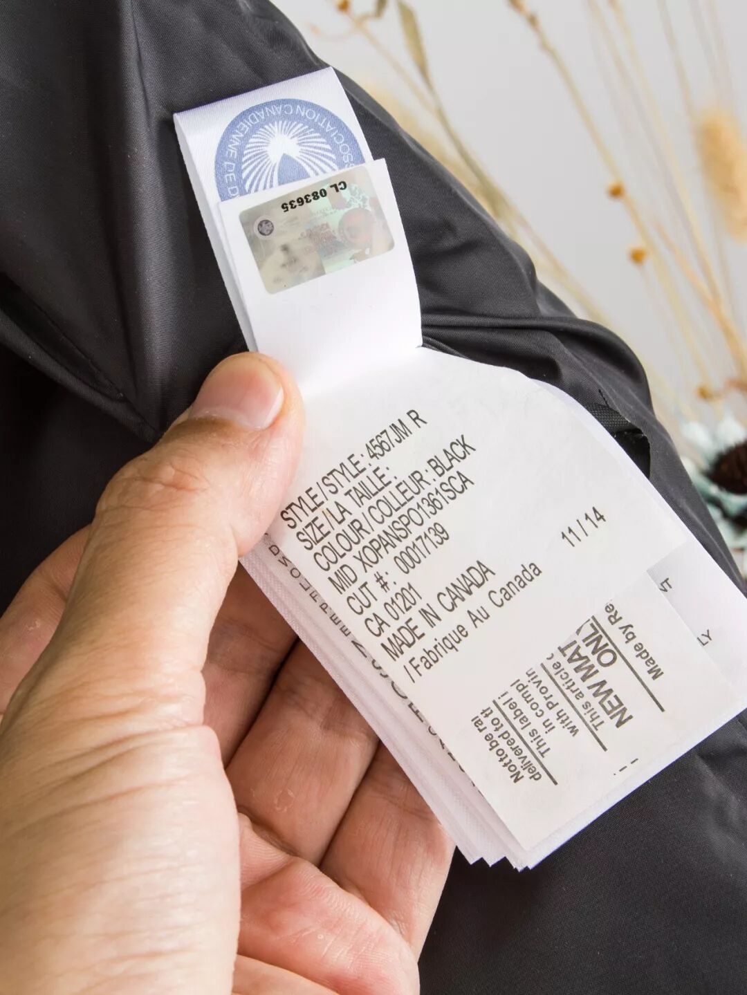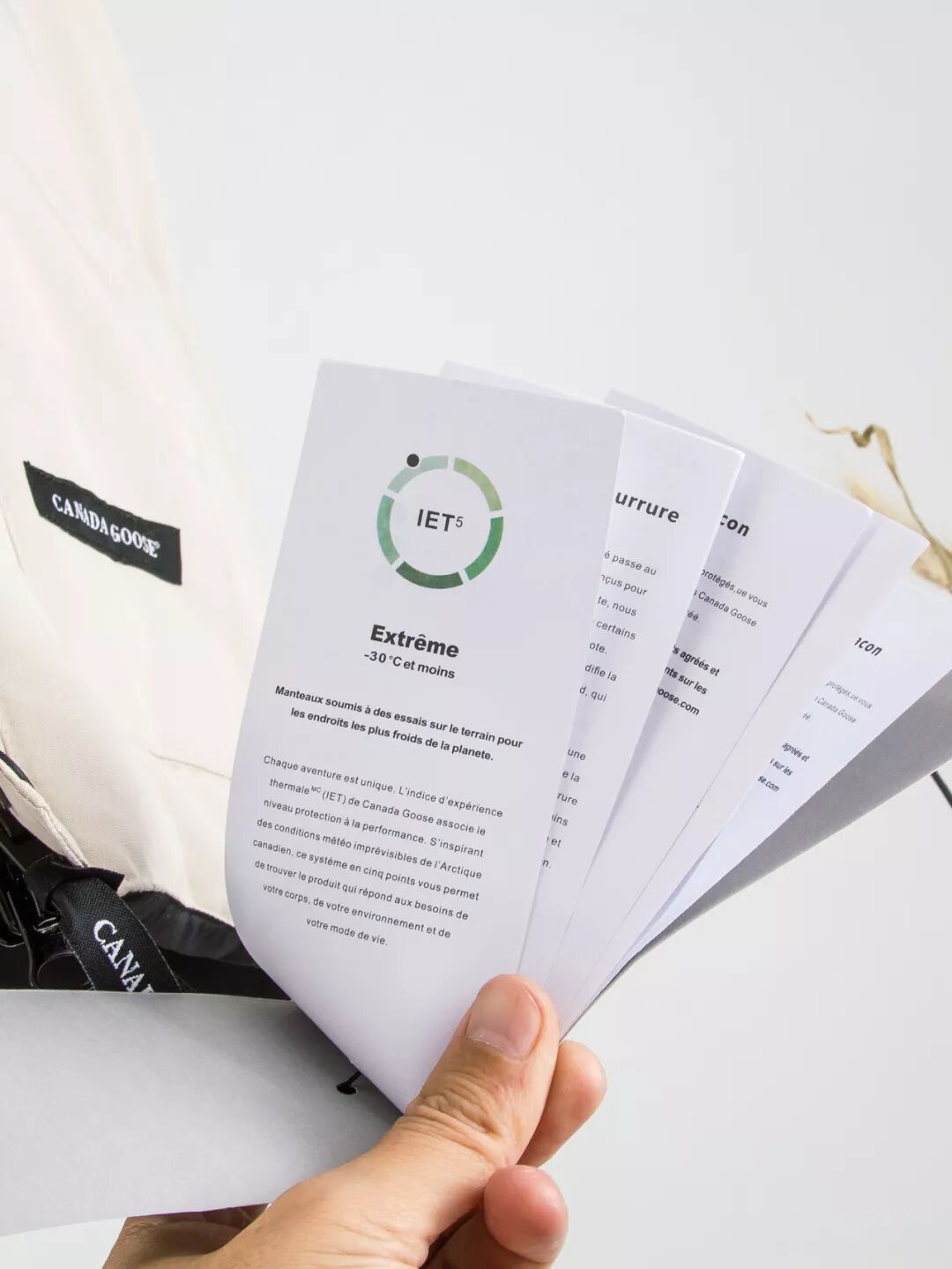 奢华的教科书式吊牌,里面都介绍了c@nada goose的历史,产品科技,以及防伪信息!