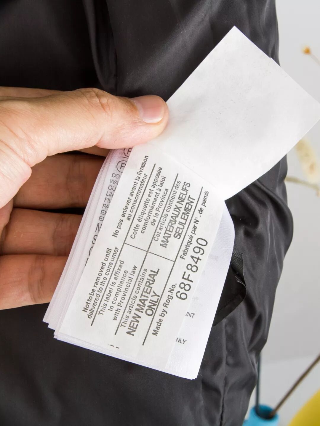 第一,这批货出自山东加资工厂直供X猫的订单,所有的吊牌,洗标都是19年的最新多联教科书式的吊牌!