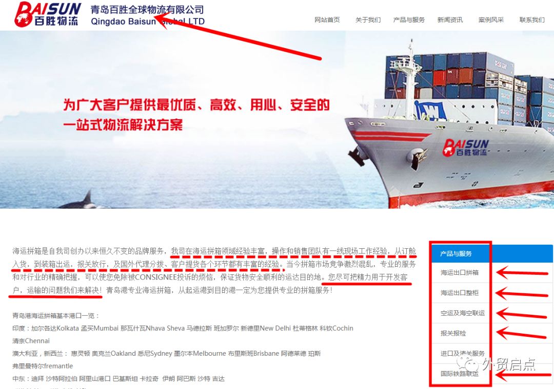 就像下面这家货代公司的介绍,提供:从订舱入货,到装箱出运,报关报检放行,海、陆、空国际运输,到国外客户提货各个环节一条龙服务。作为做外贸的您可把精力用于开发客户接单,出口运输所有的问题都有货代来解决!