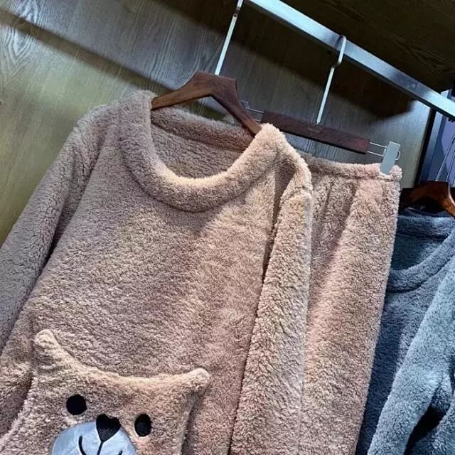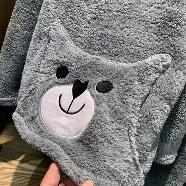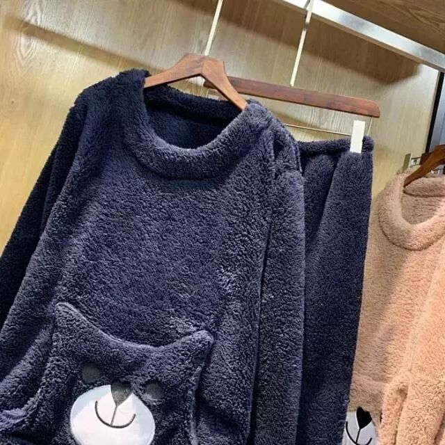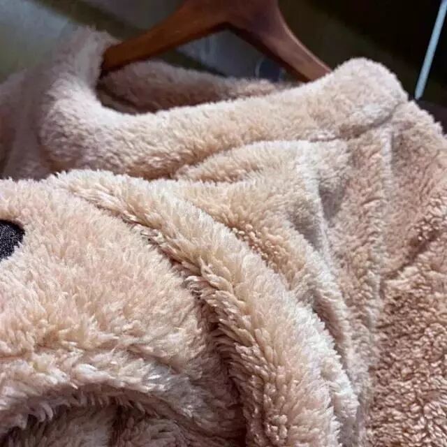 那种毛绒绒的手感,也是很适合秋冬当睡衣穿的,很暖很舒服