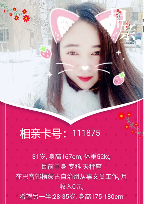 【活动对象】满20周岁单身男女。【要求】①报名人员必须是单身人士。②发送个人真实信息(姓名、年龄、家住地区、工作、照片等)③本平台报名人数过多,平台难以一一审核,所以希望大家相互监督,遇到虚假信息可以向小编举报!④审核通过的人员,我们将在平台相亲栏目中发布你的个人信息、照片,作为相亲交友渠道。【报名方式】