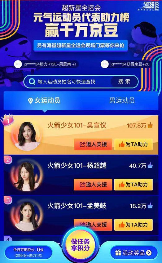 点击下方阅读原文,即可在线为爱豆打榜,助爱豆赢取「元气运动员代表」称号。