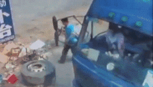 ▲多年前的经典片段:一个男子用刀戳车轮胎,结果.......